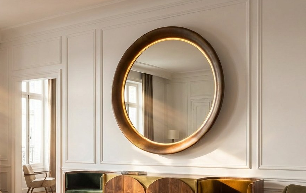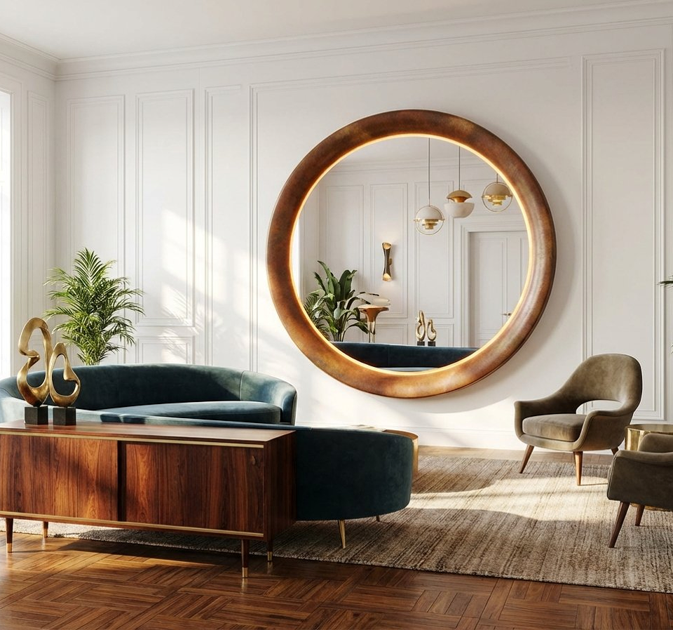 To nie jest po prostu zwierciadło, lecz autonomiczna rzeźba, która anektuje przestrzeń, nadając jej szlachetny, galeryjny wymiar.