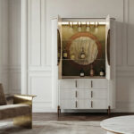 W obrębie kolekcji, Witryna Valarme to osobiste sanktuarium dla rzadkich alkoholi. Nie jest to tylko mebel, lecz symbol statusu. O unikalności świadczy choćby ręcznie cięty łupek, stanowiący znak rozponzawczy kolekcji Velarme