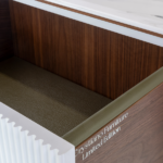 Witryna Valarme to mistrzowska gra subtelności, będąca uosobieniem elegancji i luksusowego detalu w ramach naszej flagowej kolekcji. Bryła mebla została ukształtowana z zewnątrz z drobnych lameli, które płynnie przechodzą w bardzo delikatne, miękkie łuki. To świadoma rezygnacja z ostrych form na rzecz harmonijnego wzornictwa. W obrębie kolekcji, Witryna Valarme to osobiste sanktuarium dla rzadkich alkoholi. Nie jest to tylko mebel, lecz symbol statusu. O unikalności świadczy choćby ręcznie cięty łupek, stanowiący znak rozponzawczy kolekcji Velarme