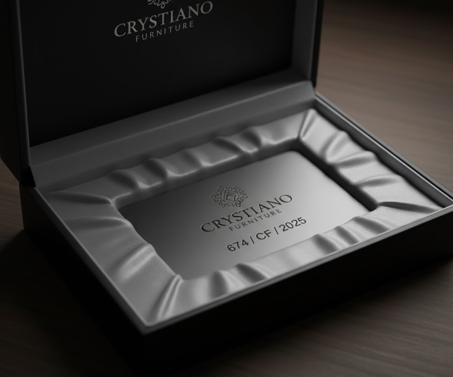 Każdy mebel jest starannie pakowany i zabezpieczany w specjalnie zbudowanej, solidnej drewnianej skrzyni z logo Crystiano Furniture. Jest to najlepsza ochrona, która gwarantuje, że mebel dotrze do Ciebie w idealnym stanie, gotowy do rozpakowania i cieszenia się nim.