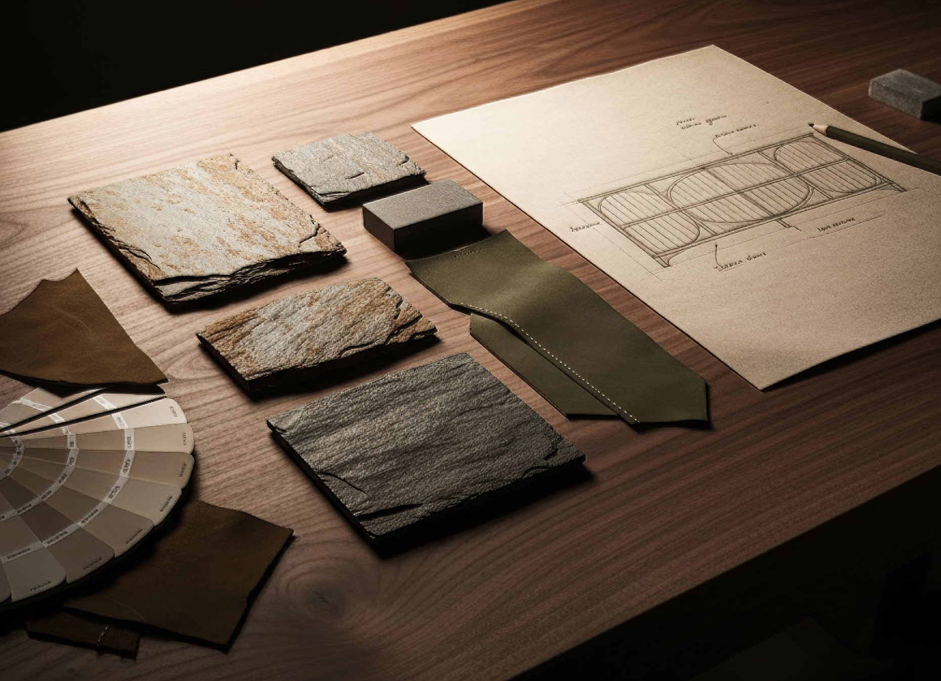 To Ty wybierasz: właściwy odcień skóry, unikalne wybarwienia fornirów oraz rodzaj i wzór kamienia – w tym ręcznie ciętego, niepowtarzalnego łupka indyjskiego.